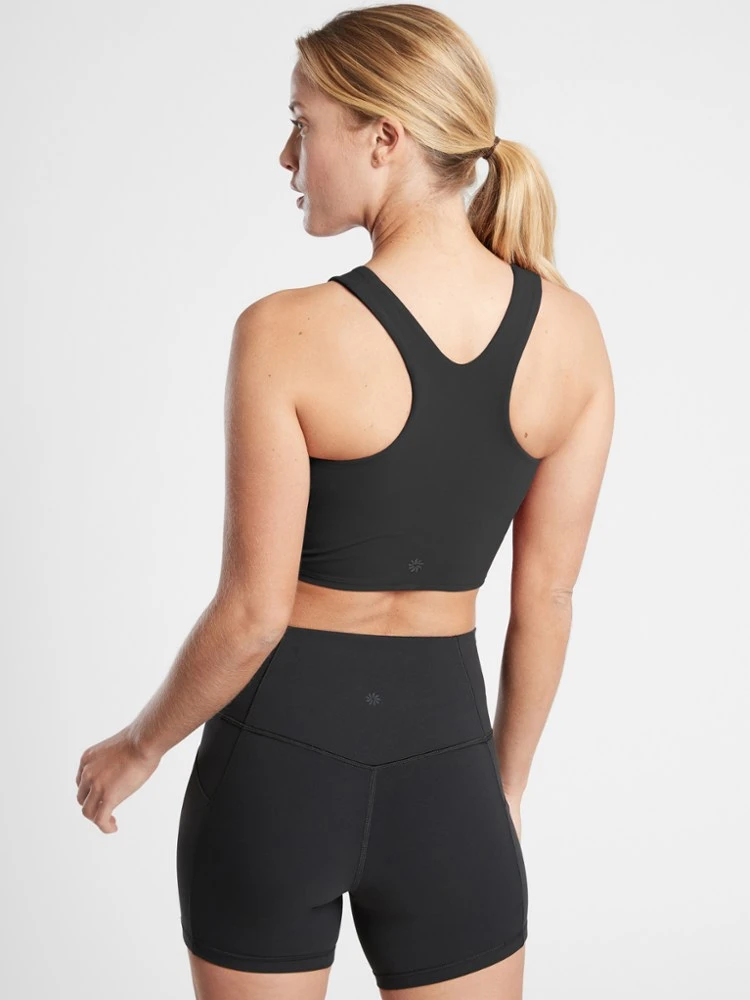 Take your workout away from the studio and into the park. With breathable fabric and low-impact support, the Athleta Conscious Crop top for A–C cup sizes keeps you breezy during summer yoga.