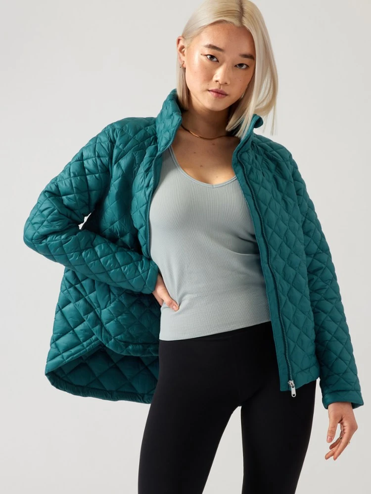 Stay comfortable on cold-weather commutes and chilly evening walks. The women’s Athleta Whisper Featherless insulated jacket gives you room to move without the bulk—and is made of recycled materials.