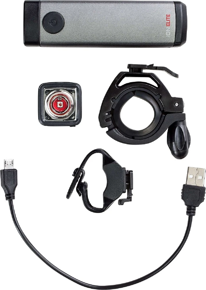 - Set includes the Ion Elite R, Flare R City, adjustable hard mount, quick-connect bracket and micro USB charging cable